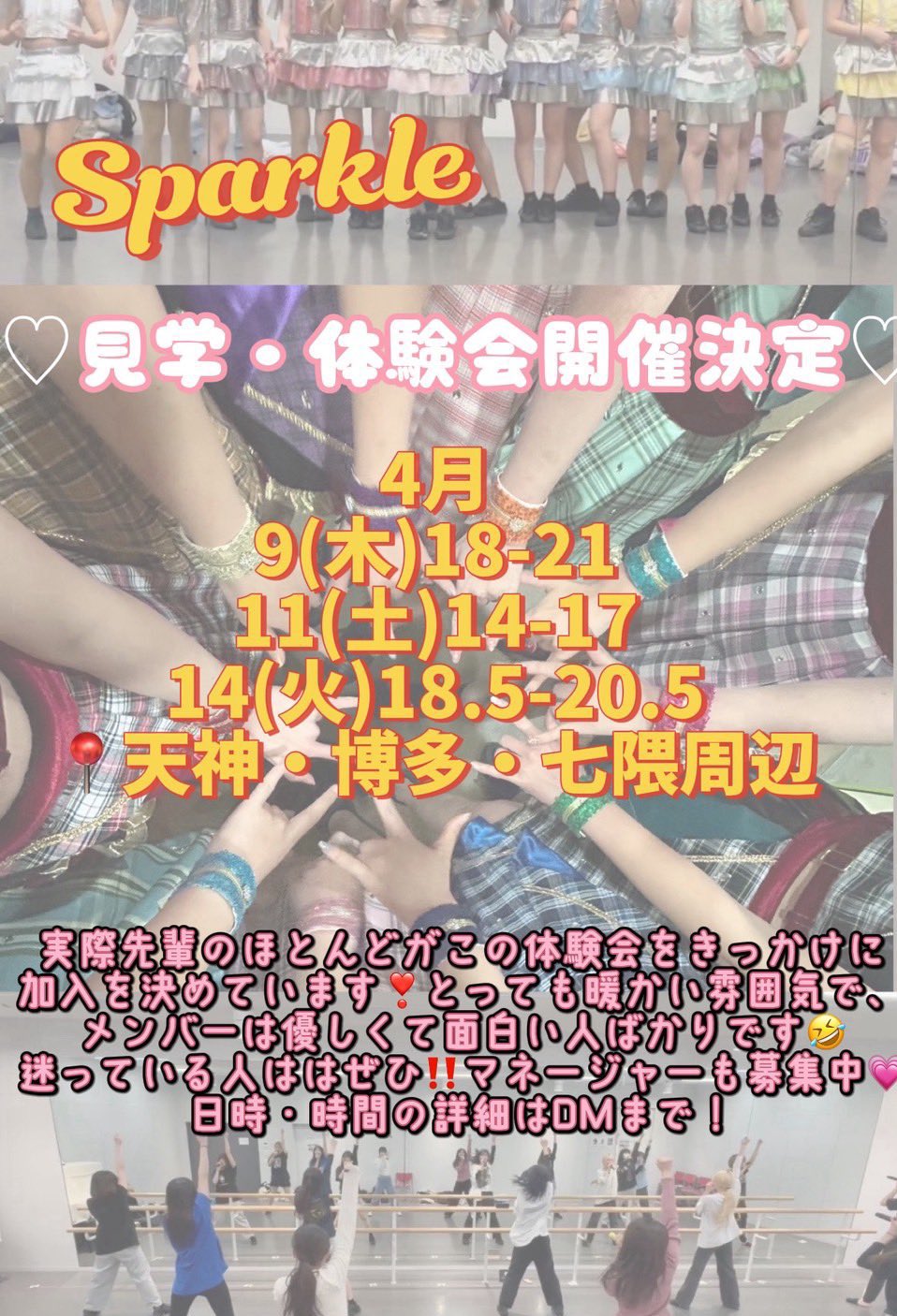 Sparkleは、福岡大学のアイドルコピーダンスサークルです。
