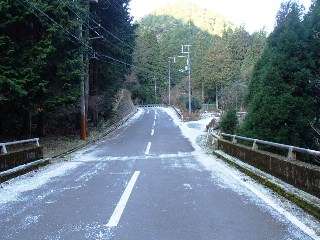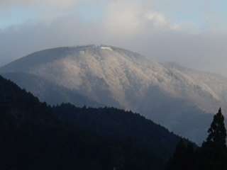 今夜はokaokaclubの懇親会があり、懇親会の時には定番となっていますトンボユリ北尾根ルートから登るナッチョに行ってきました。 先週並の寒波が来るということだったが、京都市内はそれほどでもなく、大原に入っても路面凍結は無かった。途中越えの道から小出石に入った所から望む権現山は白くなっている。小出石の路面温度表示はマイナス3度。