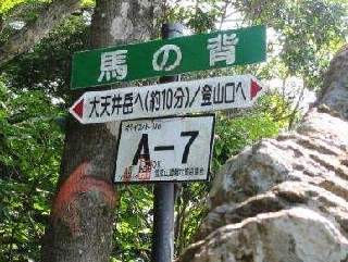 長いクサリ場をよじ登り、覗き岩、続いて馬の背、笑ったのはセリ岩と呼ばれる狭い岩盤の間を通り抜ける時、腰に下げていた飲料水が引っかかり、行く事も戻る事もできずに真ん中でギャーどうすんねん。結局腰から飲料水のポシエットを外し何とか抜けてみると、右の方に迂回する所があり、一人でテレ笑い、あ〜あ。