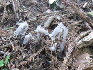 最初に比べればきつい登りも無く進みますが、途中で久しぶりにギンリョウソウに出合いました。去年かな〜、奥賭けの弥山の近くで見て以来です、OKAOKAのみなさんは北山の奥地でみておられるのでしょうか。 そうこうしているうちに鉾立山に到着。こちらはこのコース最高点だそうで丁度愛宕山ぐらいでしょうか、展望も良く案内の看板もありますが、古くてイマイチです。ただ、どの地点でも案内の標識はしっかり立っています。前回の篠山でもそうでしたが、兵庫県のポリシーですかね〜。 さてさて先を急ぐオヤジ、通称ジャンクションピークと呼ばれる地点に到着、面白い所やな〜と想像していたのですが、三コースぐらいの分岐点で標識がやたら多いだけでした。