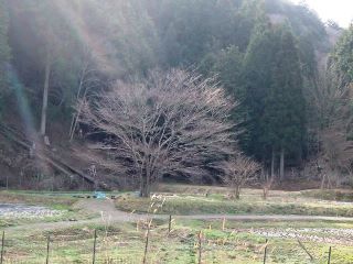 てな訳で、いつも通り近所の手前、7時を待って自宅を出発。行き道沿いにあるコンビニに寄っておにぎりを仕入れ、出町柳のバス停の人出を見て、川端通りを北上する。川端通りの桜並木は、もう散り初めで、2011年の同時期の様子よりは早いようだ。それなら山のタムシバもちょうど見ごろではないだろうかと期待する。 野菜もでき始め、並ぶものも増えたからだろう大原の朝市は盛況だ。今が満開となった大原の桜を見て、小出石の信号を西へ折れ百井へと登って行く。小出石の温度表示は5℃。それでも道端の川沿いにギブシの花が咲き、春本番。