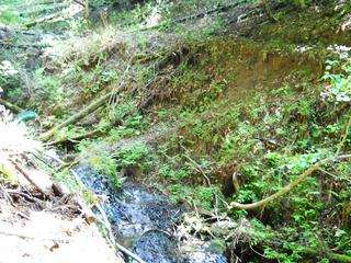 するとその尾根にまたジグザグの下り道が発見できる。280m地点まで下ってくると、小鞍部になり、道は左斜め下に降りていく。そして一つ西のごく小さな尾根まで進む。左には谷川が見える。そのごく小さな尾根をジグザグに下っていく。