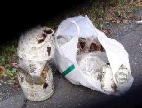 清掃登山の結果ですが,昨年春より少ないものの空き缶は12本,ビン2本,ペットボトル1本他にゴミ等,ひどいのはビールの小樽が道脇に捨てられていたこと。こんな山中で飲むのも結構だが,ボトルを棄ててまで飲む必要があるのか腹立たしくなる。新しい空き缶の棄てられているのが少ないことがせめてもの救いである。今日はスーパーの買い物袋1つですみました。これらは自宅に持ち帰り分別処分しました。 残念なのは林道終点の多量の空き缶,ペットボトルその他ゴミ,全く無くなる様子はない,これだけ多いと持ち帰る気にもならない。しかし,継続して京都一高くて綺麗な山を目指し取り組んでいきたいと思います。