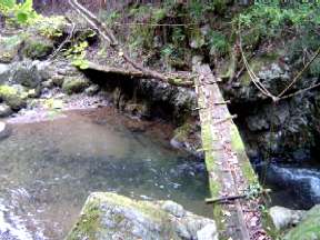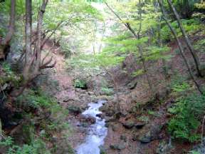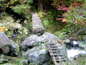 空き缶も気にしながらのツボクリ谷の渡渉が始まる。ロープを持って渡河,少し水量は多めである。単独男性に会う,「ここは楽しい谷だ。」と言って上流に向って行かれた。崖のロープ頼りに滝の前を下る,その先で痛い目に合う。渡渉中の石上でスリップし踏み外す,そのまま川の中へザブン何とか両手両足の四つんばいで体制を確保する。水深は30cm若だったが当然シューズの中に水が入りずぶ濡れ,右手薬指からは出血,両膝も少し痛む。どこかで石に当たったらしい。腕時計も水の中。カメラだけは胸のポケットから飛び出さなくて良かった。水の入ったクツは重くそして気持ちのいいものではない。 指にキズテープを貼り,クツの水を流し出し体制を整え下流へ向います,次の滝は右岸を高めに進み下っていきます。ツボクリ谷分岐までにさらに単独男性と女性3人グループに出会います。その後は芦火小屋を見て,「くの字橋」を渡ります。くの字橋もかなり痛んでいるようでこの先いつまで持つのか心配です。やがてスギ林を通り丸太橋を渡ると林道終点に出ます。後は関電の発電所を見て林道を足尾谷橋まで戻りました。今年の紅葉時期は11月中旬以降が良いような気がします。