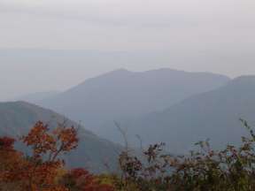 紅葉を見ようと皆子山へ出かけましたが,木々の葉は一部黄色に変わってきているもののまだ多くが緑色で全山を見ても少し早かったようです。今回も空き缶などの回収も兼ねて登りました。 足尾谷橋に車を駐車し,国道を歩いて平へ,そして安曇川源流に向って林道を寺谷出合まで歩きます。途中のモミジは赤く色づいていました。50分で寺谷出合に到着。準備をしていると,人影があり男性が一人やってきました。皆子谷へ行くつもりもあったようですが,橋がないことを伝えると寺谷から登ることに決めたようです。お話をすると初めての皆子山登山,同行を求められ了解しました。定年して山歩きを始められたようでまだ初心者ですよと話された。