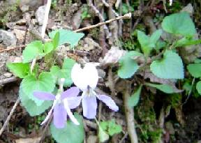 桟敷ヶ岳の行ったことのない直登道を登ることにして,雲ヶ畑の祖父谷林道へ向う。山頂から石仏峠までは,数年前に歩いているので迷うこともなかろうと安心しながら出かけた。 小梅橋近くに駐車し直登道取り付きを目指す。天気は良く,久しぶりのためか祖父谷林道が新鮮に感じる。林道脇に咲く春の野草を探すと結構あるものだ。タチツボスミレ,ミヤマキケマン,ヤマザクラ,カタバキ,ボタンネコノメ等思いの他多数咲いている。