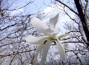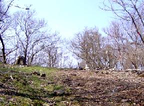 山頂には誰もいなかったが,写真を撮っていると単独の男性が登ってきた。定年し百名山を歩いていて現在五十山程登ったとのこと。すぐに男性は先行して行かれた。一人で鳥のさえずる静かな山中に身を置く。時間は早いが昼食を軽く摂る。 ナベクロ峠を目指して山頂を後にする。天気は青空で風もなく,絶好の山行日である。谷筋にある雑木林の中にコブシの白い花がよく目に入る。 一旦鞍部になり再び登り道を行く,すぐに北から西へ向う道になる。ここからは以前だと送電鉄塔と電力ケーブルが見えていたが,樹木が成長し見通しが悪くなっている。ナベクロ峠手前ではコブシとアセビの花が目立つ。伐採されて明るくなったナベクロ峠からすぐ北へ歩き鉄塔下に出る。
