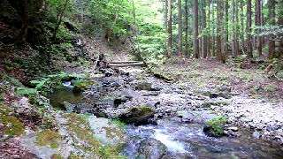10:15「越木」の標識が立つ越木峠登り口で休憩。パンとコーヒーで2度目の朝食。今日はロングなので、しっかり腹ごしらえをする。越木峠への谷道は、1週間前よりも緑が濃くなり、ヤブデマリの花が一面に咲いていた。最後の登りをあえぎながら越すと、すぐに広域林道。そして越木峠。今日も静か。深く掘れた峠道を下っていくと、すぐに水音が聞こえ、八丁川のほとりについた。