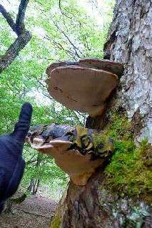 奈良谷との分岐近く、木のはしご橋はとうとう朽ちてしまっていた。新しい巻き道ができつつある。倒木が道をさえぎり、ただでさえややこしい広谷への登りが、踏み跡だらけになっていて、急斜面をよじ登るはめになる。やっと本来のジグザグ道に乗る。今日始めての登りが、応える。はあはあ息を切らしてしまう。尾根近く、足元に散らばるしゃくなげの花弁。もう終わりかけのピンクのしゃくなげが、そこここに咲いているので、追いかけてみる。 木の根道を這い登ると、細尾根の上。藪で閉ざされていた細尾根の先に、はっきりと道が出来上がっていた。品谷山の稜線が眼前に広がる。尾根にはしゃくなげが続く。ここが有名な刑部滝のしゃくなげなのだろう。団体さんが来たのかな。それにしても、このまま進むと刑部滝の上部。普通のハイカーが迷い込むと危ない。刑部谷への分岐近くを、念を入れて木でバッテンし入りこまないようした。 淡い緑色に染まった広谷。朽ちた桂の木の幹に、きのこが生えている。有名なサルノコシカケだが、様子がおかしいので触ってみたらプラスチックの作り物だった。うーん。ダンノ峠に向かって緩い登りが続く。長丁場を歩いてきたので、さすがに足元がよろけたりする。よたよたとやっとこ峠下の坂を登り、ザックをおろして休憩。峠の周囲も緑が深い。ぽつんと1本立っていた老木は、一層年をとっていた。もう新芽も出ていない。周囲の若木の陰に小さくなり、老体はもう朽ちなんとしている。長い年月、ご苦労様でした。木の幹をなで、峠を下った。 ダンノ峠から小刻みなアップダウンの続く尾根コースは、今のわたしには耐えられないだろう。谷へと斜面をぐんと下り、ごろ石の谷道を歩いた。倒木は片付けられ、歩きやすくなっていた。最後の沢を下ると、すぐに林道に出て、もうすぐ菅原だ。