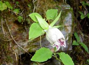 急斜面の下り道が終わると鞍部から山頂直下の尾根ピークへ,スギの幼木とシャクナゲが密集しています。前回目にしたナツエビネを探すと既に花は終わり結実していました。このピークで北西に方向転向します。西に向かって行くと尾根が分かれているため,左手(北西)に進みます。鞍部がありすぐに七瀬・カヅラ分岐。カズラ谷には左側(南西)の坂を上がり平坦な尾根ピークを行きます。この後は,尾根を外さないように気を付けてカヅラ谷出合に向って急斜面を下り降りていきます。大岩が2つ続く箇所を通過すると間もなくカヅラ谷出合となります。 カヅラ谷出合の河原で帰りの準備をしていると単独男性がカヅラ谷を渡ってやってきました。そのまま休まず行くようです。あと灰野近くで夫婦一組に会いました。トロッコ道沿いに目を向けるとツルニンジン・ツリフネソウ・ゲンノショウコなど秋の野草が目に入ってきました。今日はきつい山歩きでしたが,深山では穏やかに時間が過ぎていきます。