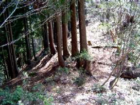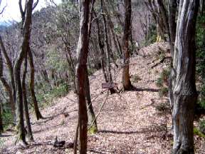 トラゴシ峠へ南下して行く,倒木もあるが山道として悪くないが,さらに踏み跡は薄くなる。順調に下って行く,急坂のピークがあり手前に脇道があったので,楽をしようとピークの迂回路を進み,尚も尾根を下るものの,あれだけあったテープが全く見かけない。おかしい。地図で確認すると,どうもトラゴシ峠への尾根に乗り損ねたらしい。坂道を登り返しピークへ戻るとテープがあり,このピーク上で方向転向しトラゴシ峠方面に向っていた。このあとアセビで道が全面覆われ分かりにくい箇所がありますが,そのまま進んでいきます。再びすっきりした尾根道になります。大穴の脇を通り,アセビの多い道になりやがてP766に到着。ここまでくるとトラゴシ峠まで一気に下ると着きます。 トラゴシ峠は峠らしくない変哲のない方向転換地です。しかし,標識も多く掛けられていて多数の人がやって来ているようです。西に下ってきた道をV字で東に進み尾根を乗り換えます。小広場から尾根を下ると,左手に下り道が現れこの道を下ると廃村八丁巡視小屋の裏手の川に出ます。渡渉すると巡視小屋にようやく到着です。