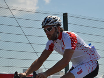 そして、一緒に走っていたのは、ティモ・グロック(らしい) 顎ヒゲすごい。まるでデーモン閣下のメイク。 高低差のあるコースを、二人でビュンビュン周回していました。 さすがにトップドライバーはすごい脚力です。 |