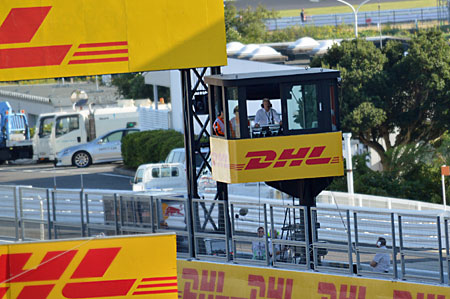 コントロールタワーにいるのは、チャーリー・ホワイティング! フォーメーションラップの後、チャーリーがスイッチをONすると・・・ |