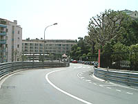 そう、ローズ・ヘアピン。 右側から下りながら グリッ! と左に曲がります。 正面の建物がモンテカルロ・グランドホテル(旧:ローズ・ホテル)。 |