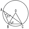 4 | 図で,3点A,B,Cは円Oの周上にあり,∠BAC= 31°である。このとき,∠xの大きさを求めよ。 |