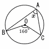| 4 | ![]() ∠BOC=160°のとき,∠xの大きさを求めなさい。 |